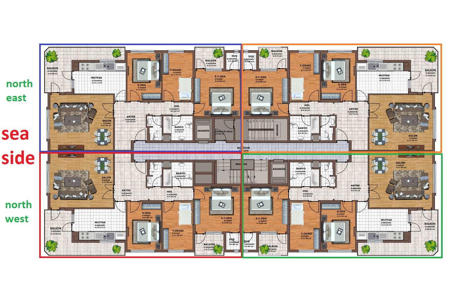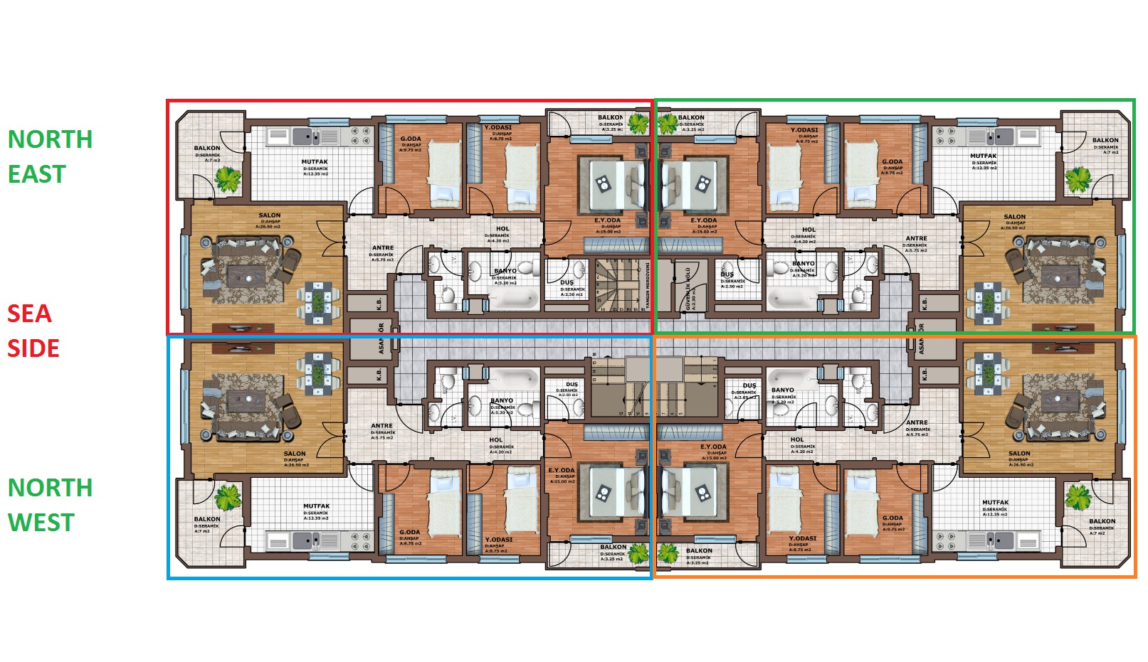 | 3 + 1 | 165 m2 | 166 m2 | 275000 | 285000 | TRY |
