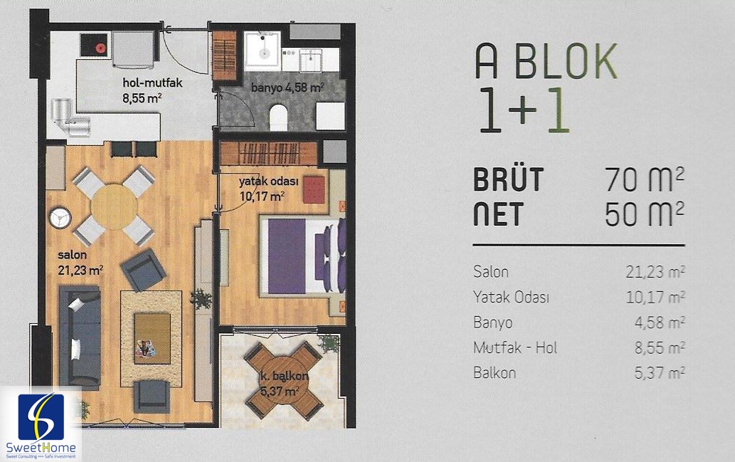 | 1 + 1 | 71 m2 | 72 m2 | 290190 | 343230 | TRY |