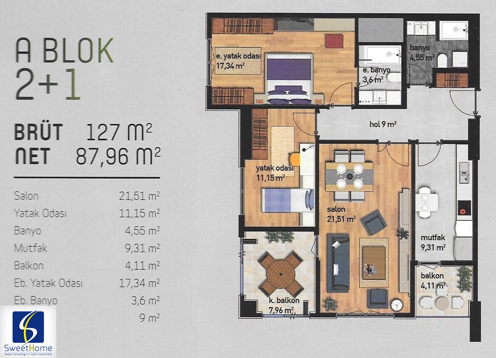 | 2 + 1 | 82 m2 | 137 m2 | 352920 | 604350 | TRY |