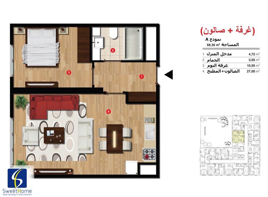| 1 + 1 | 68 m2 | 88 m2 | 180000 | 230000 | TRY |