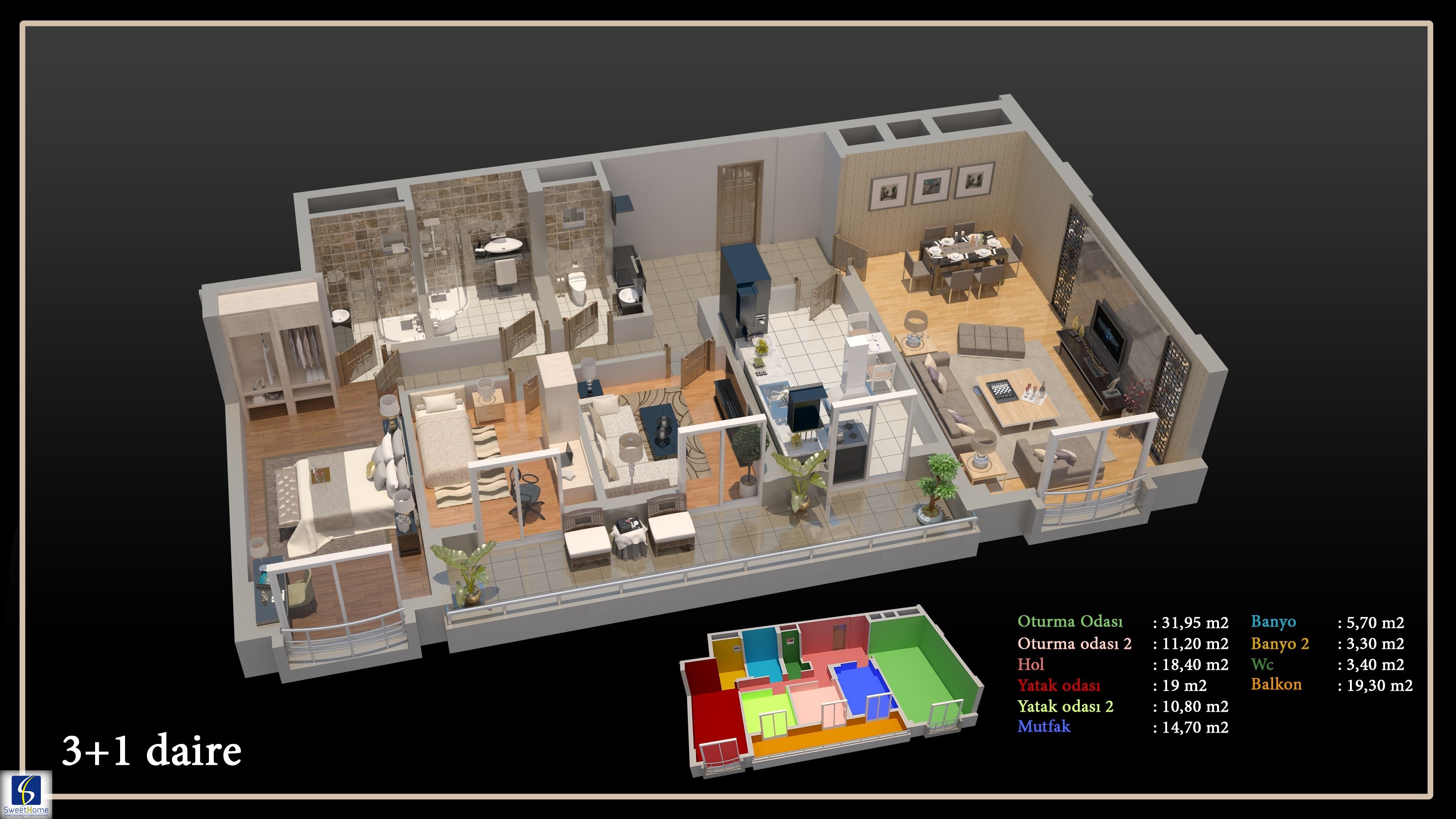 | 3 + 1 | 190 m2 | 191 m2 | 300000 | 300000 | TRY |