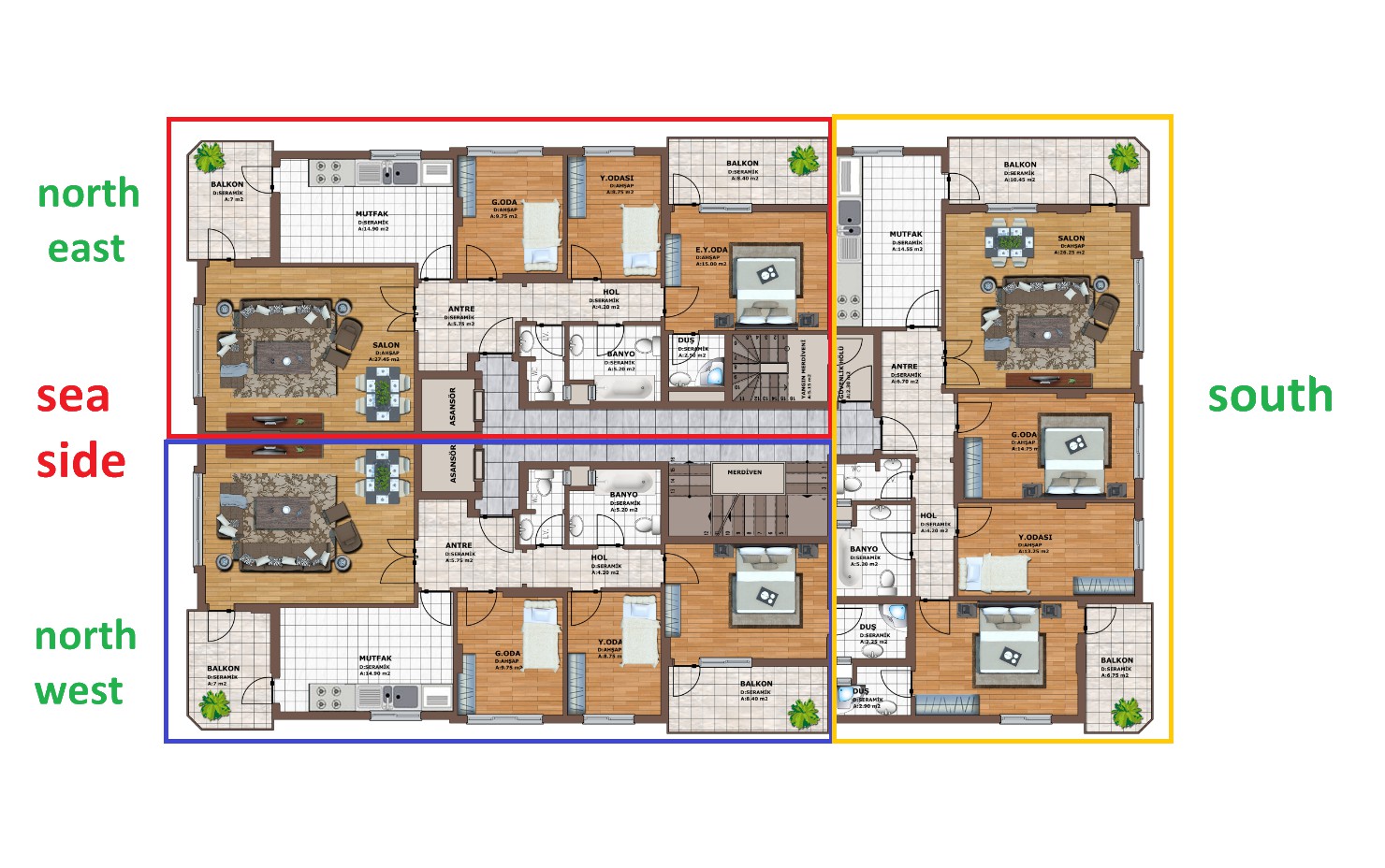 | 3 + 1 | 165 m2 | 166 m2 | 275000 | 285000 | TRY |